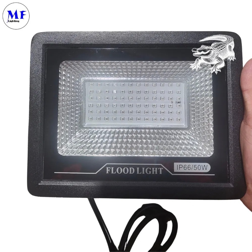 چراغ سیلاب LED UVA 395-400 نانومتری 50 وات IP66 با راندمان بالا، غیر قابل تنظیم، 180 درجه قابل تنظیم، طراحی شده برای کاربردهای پخت سریع رزین و جوهر در تنظیمات صنعتی و سرگرمی.